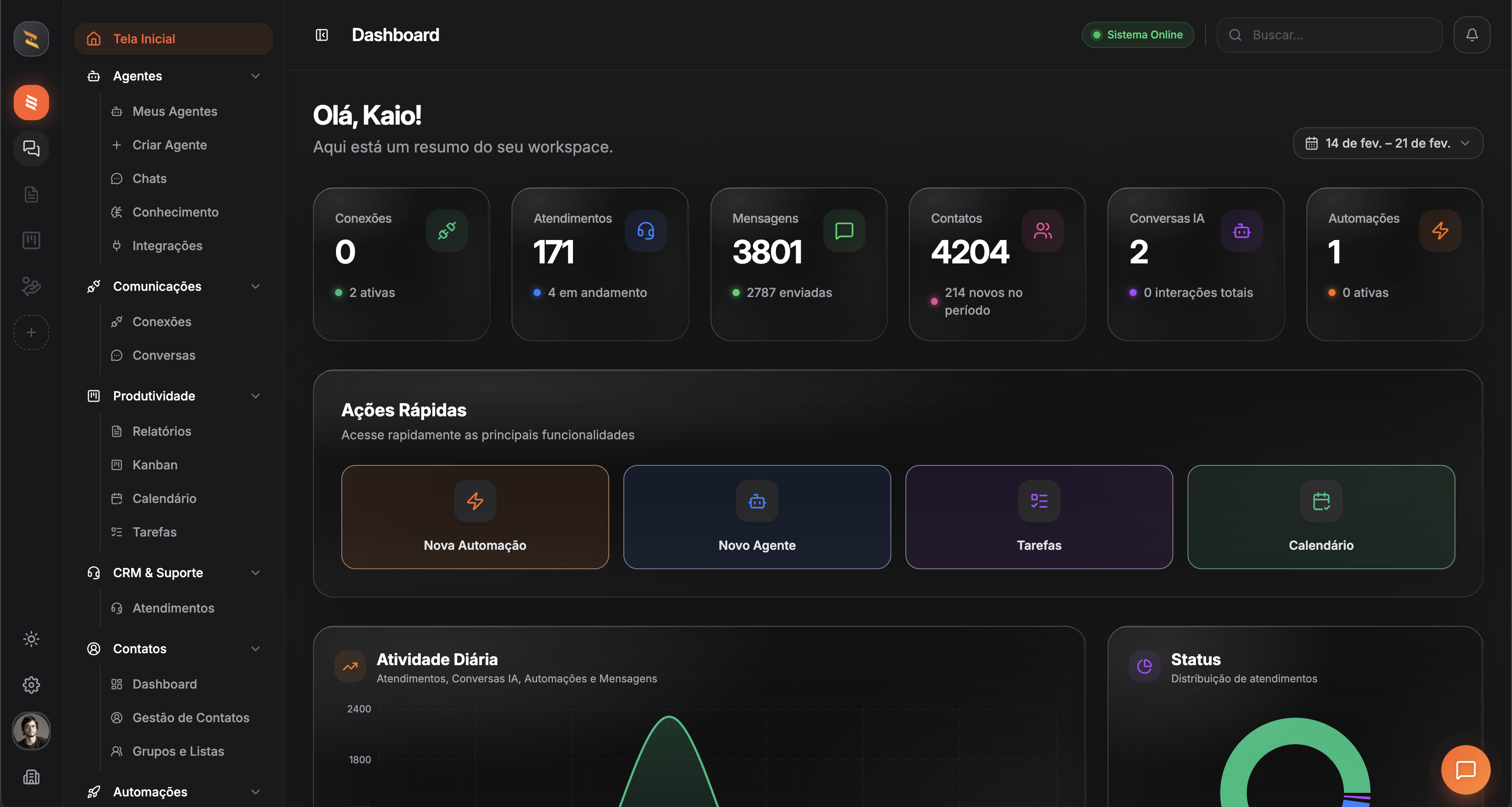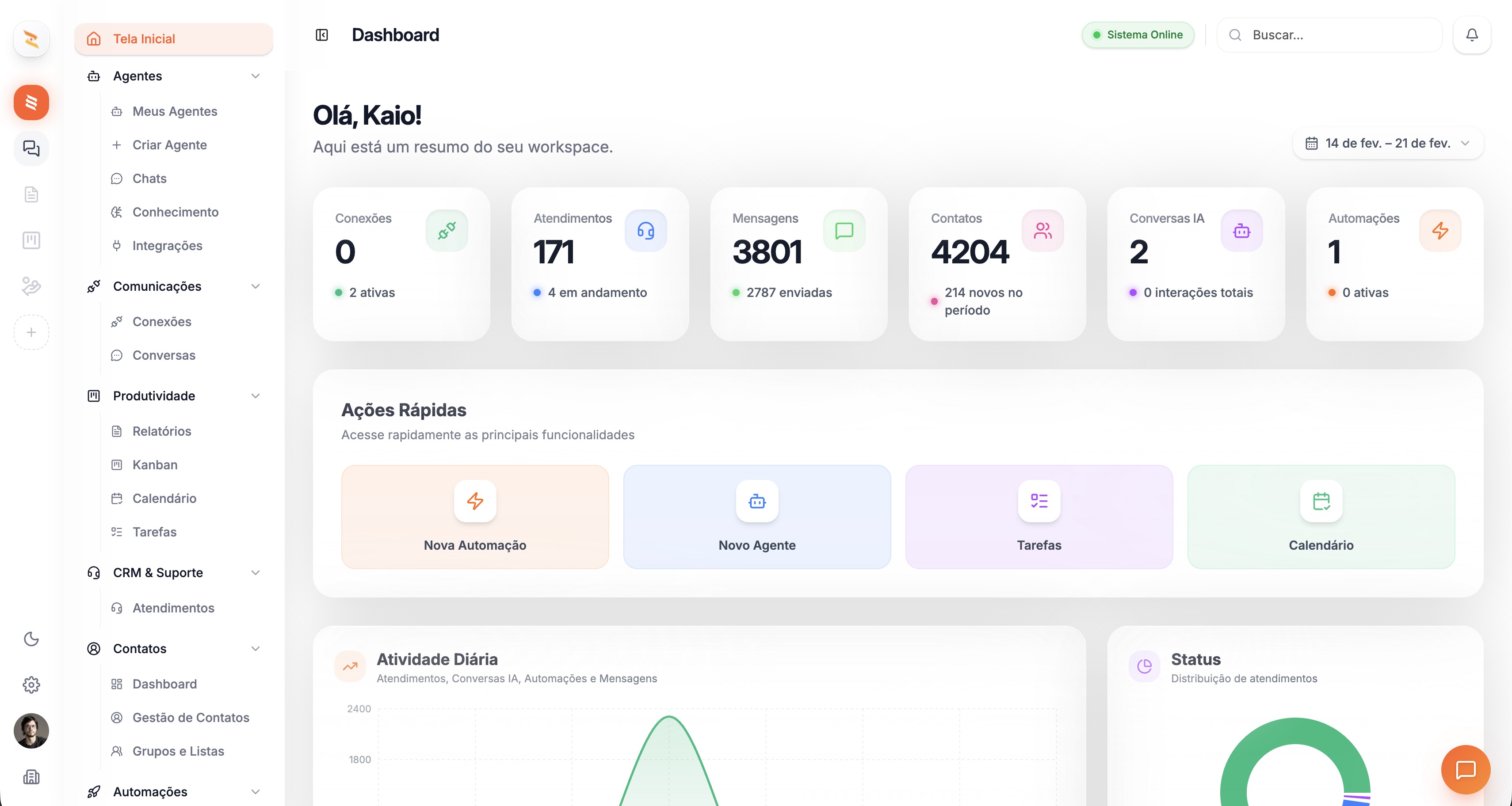 Aumente sua produtividade com uma plataforma completa que centraliza atendimento, automações e mantém sua equipe conectada.